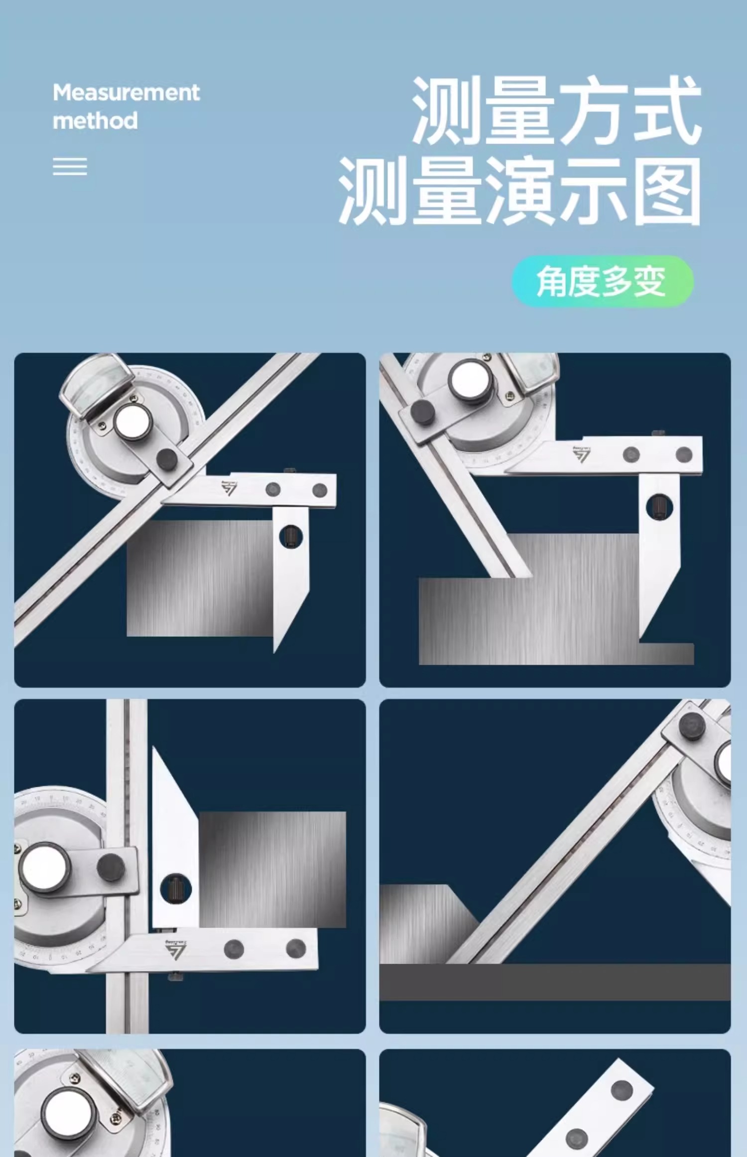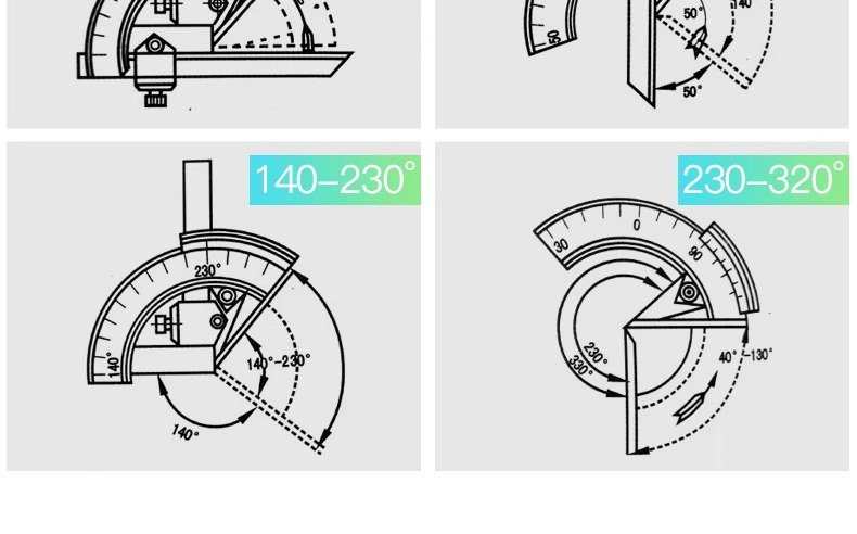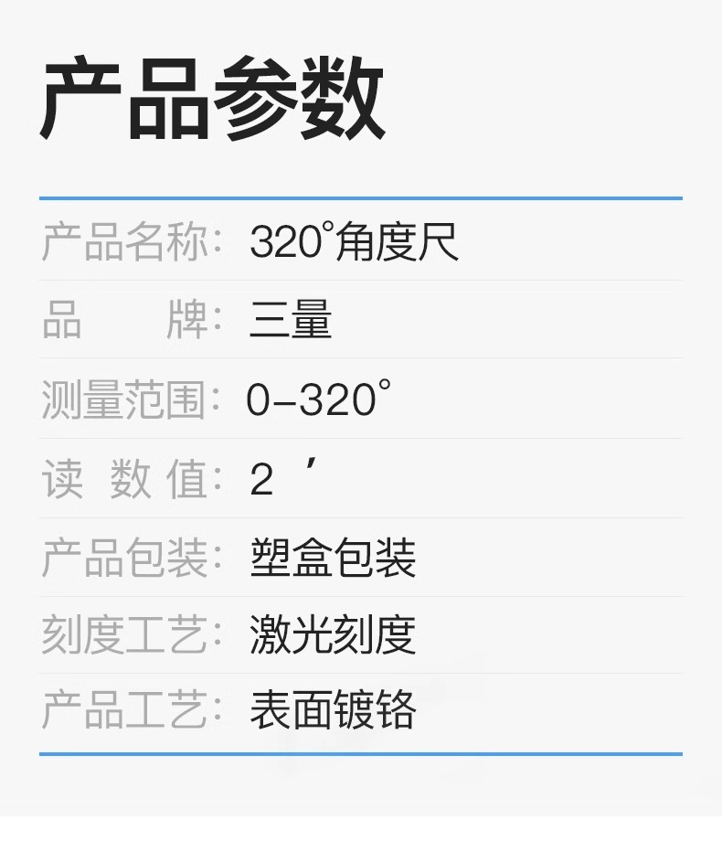 当前位置:首页 » 产品中心 » 三量高精度*角度尺320度角度测量仪量角器尺角度规360度
