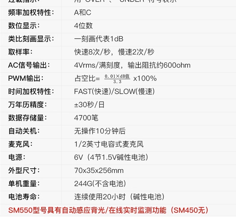 SM350(背光,A加权,三节电池更耐用)