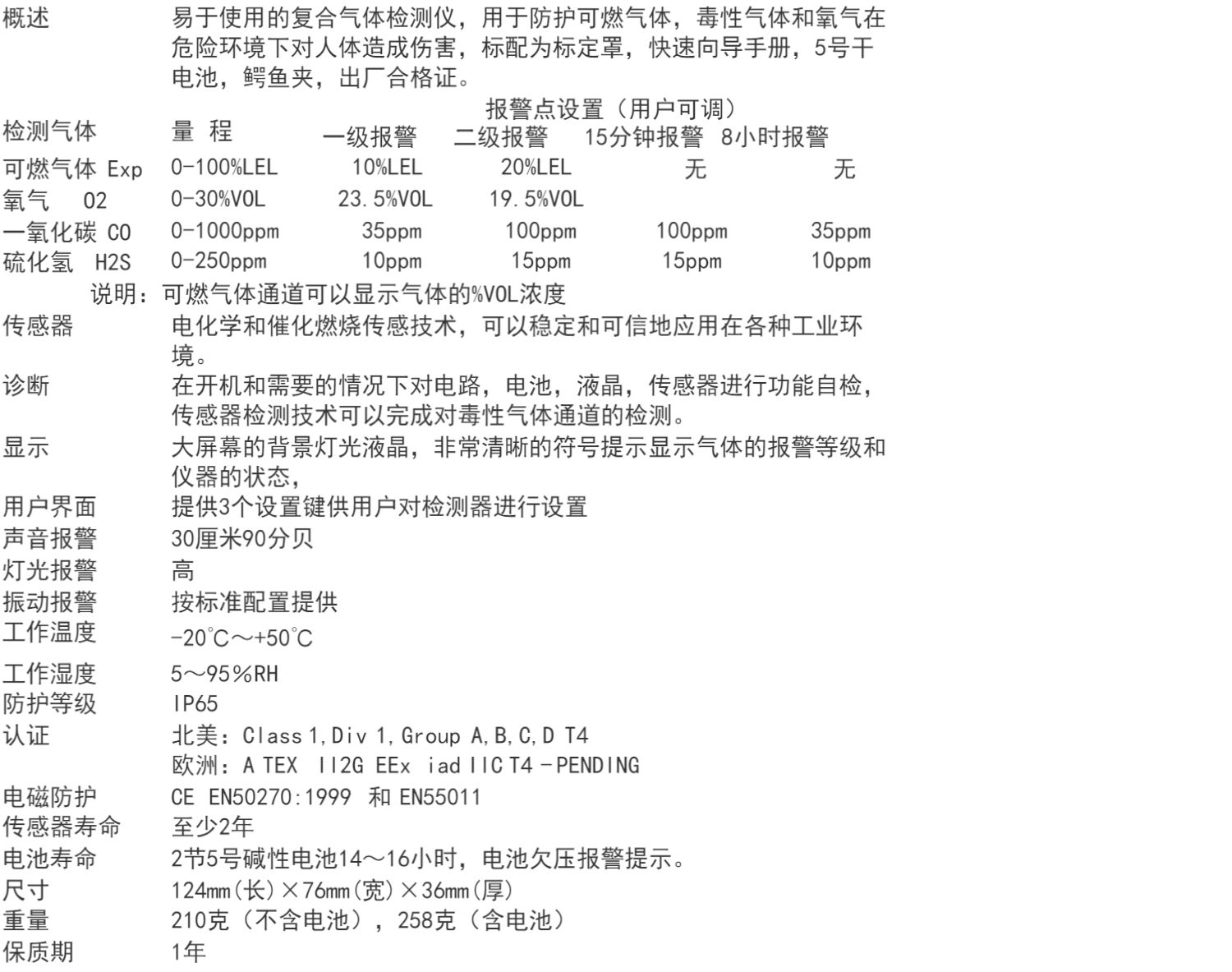 四合一气体检测仪