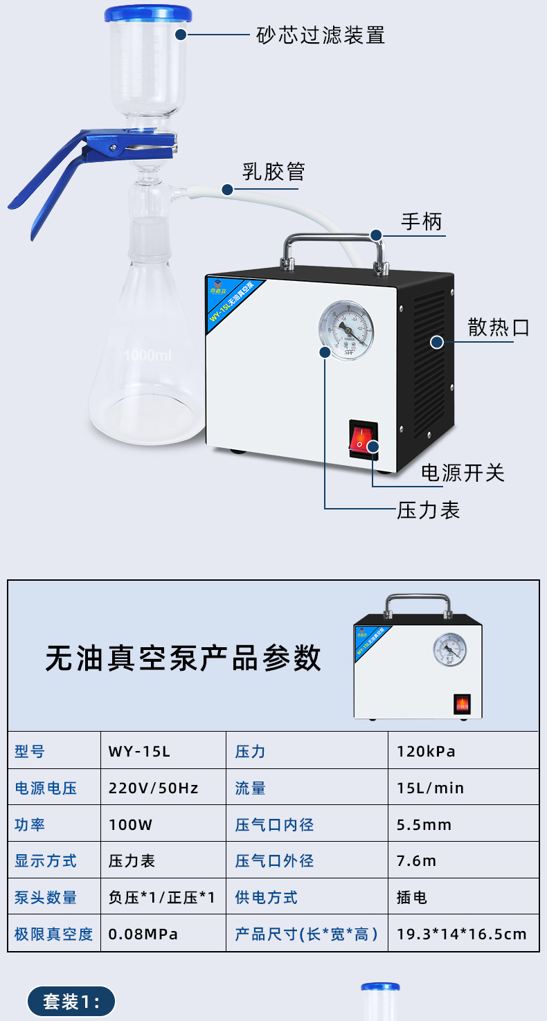 无油隔膜真空泵便携式抽气抽滤泵静音小型可调实验室用