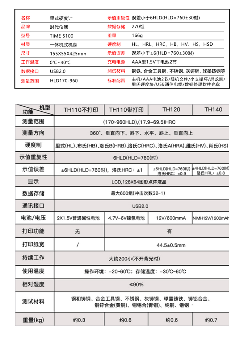 北京时代之峰TIME5100一体化里氏硬度计 里氏硬度测量仪 原TH170