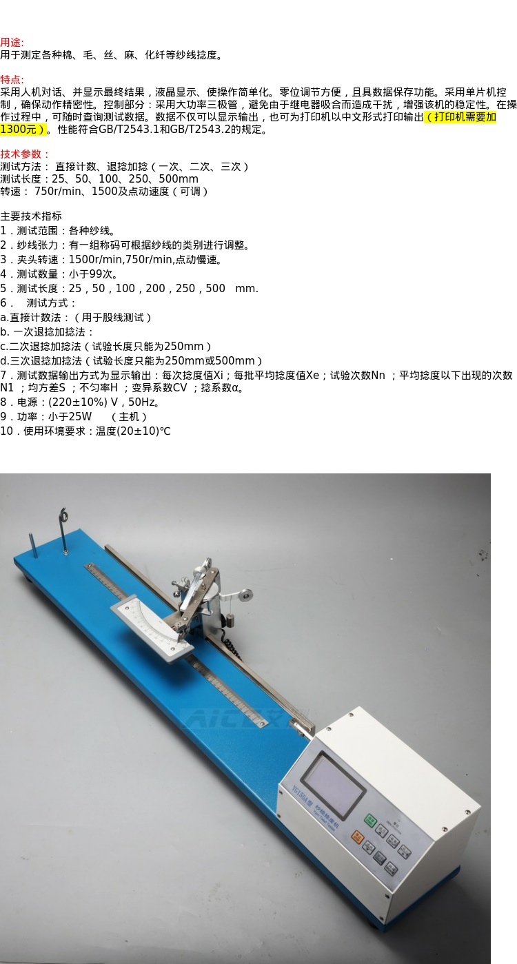 当前位置:首页 » 产品中心 » Y155A电子纱线捻度仪数显捻度机退捻加捻纺织仪器直接计数法