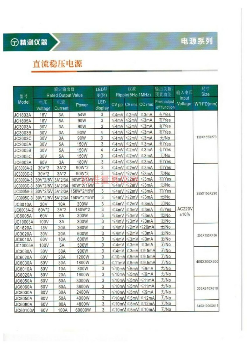直流稳压电源JC3003A JC3005A JC6003A JC6005A输出开关30V 60V