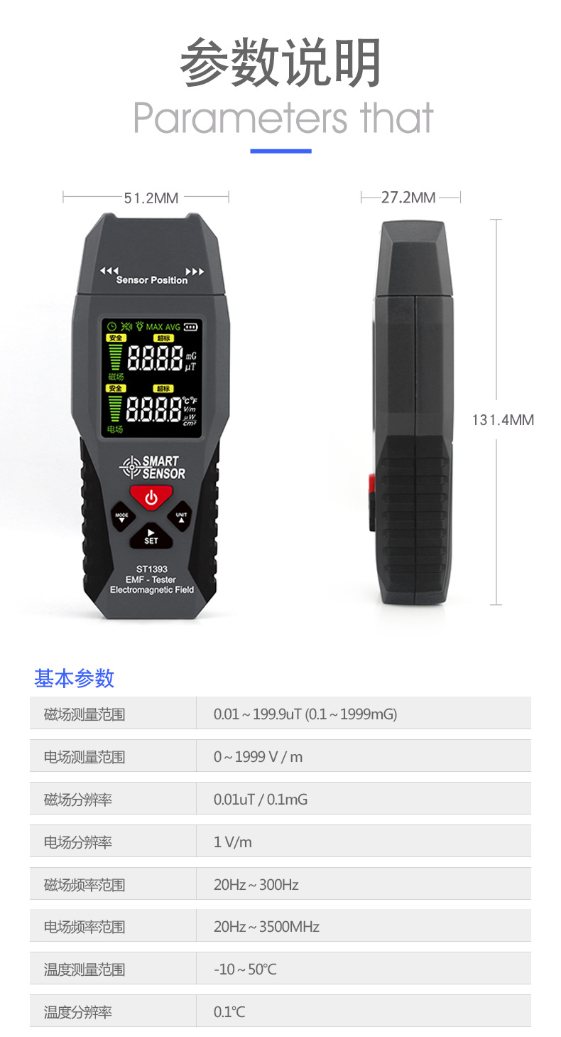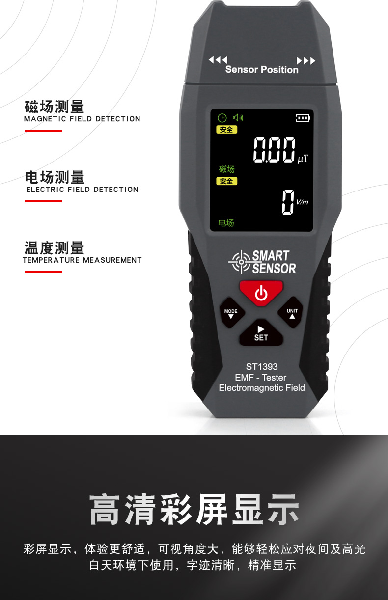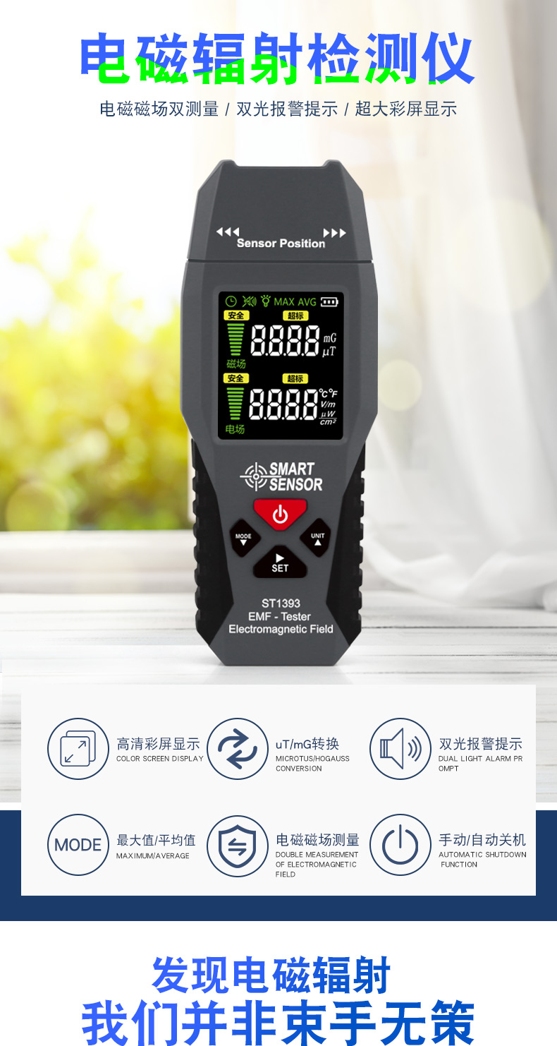 当前位置:首页 » 产品中心 » ST1393辐射检测仪专业家用便携式电磁电场磁场电磁波检测仪