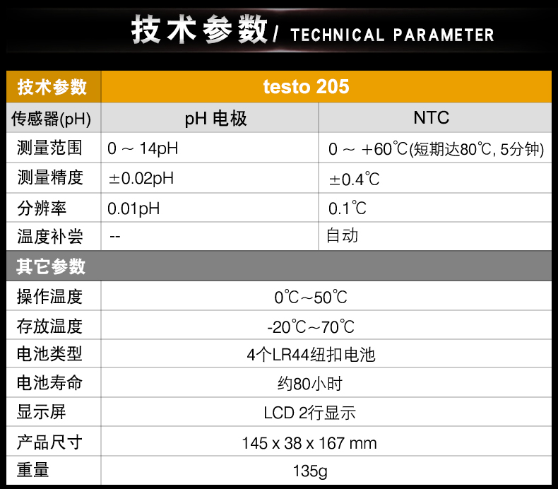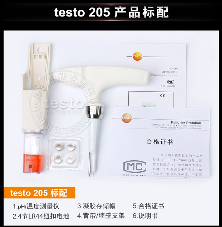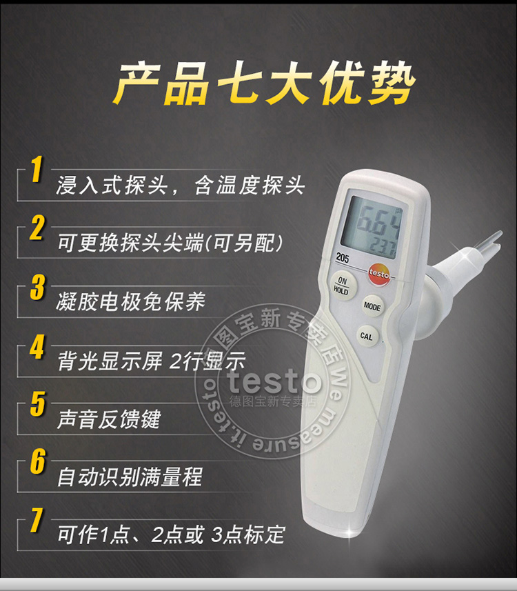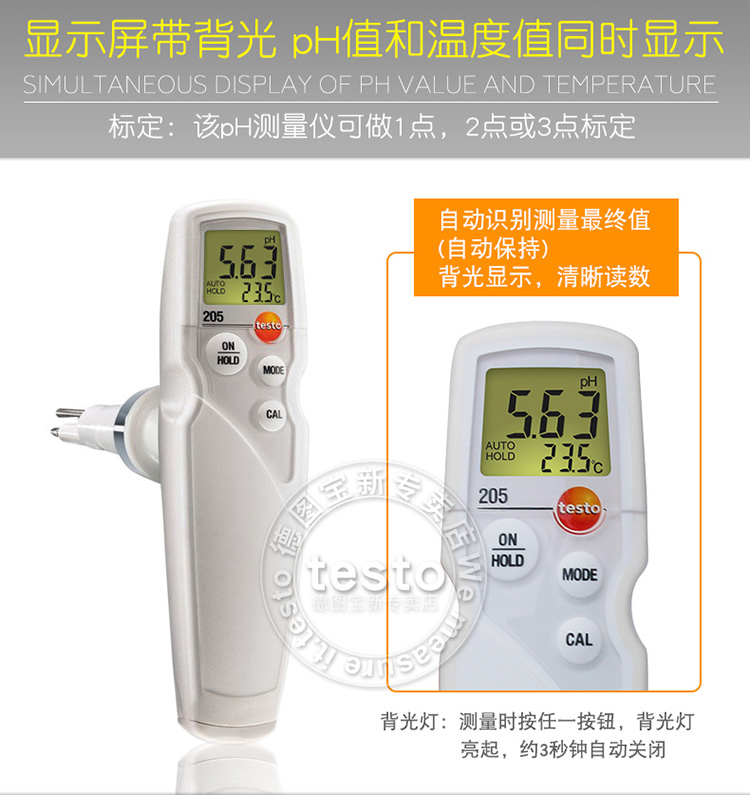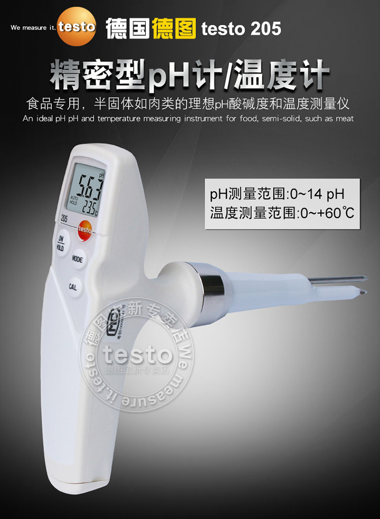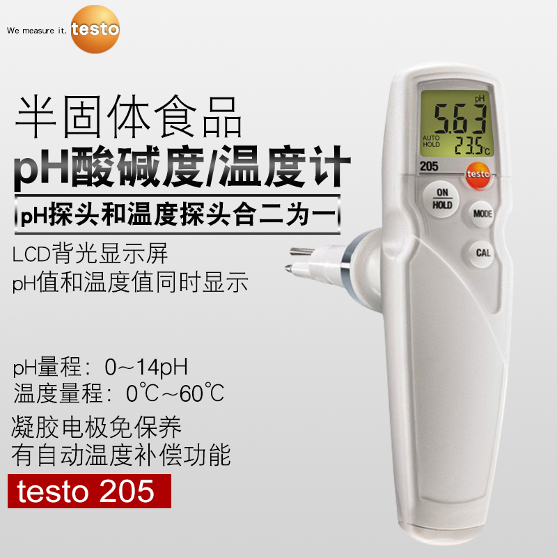 testo205半固体浸入食品专用pH酸碱度计温度测量仪手持式