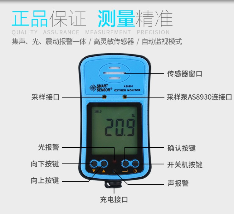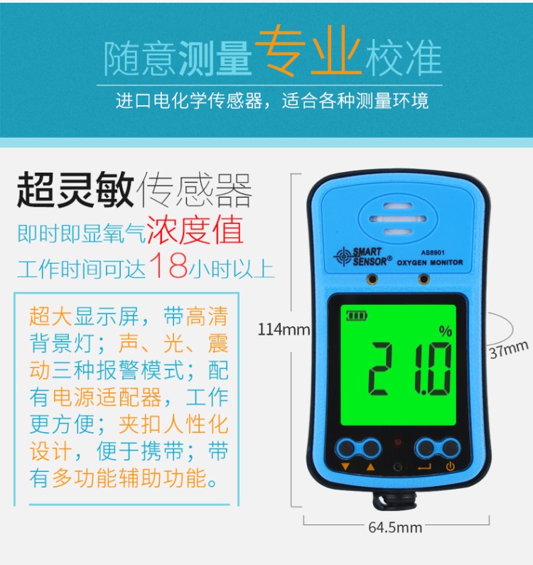 AS8901氧气检测仪AR8100氧气O2浓度含量测试仪8801检测仪