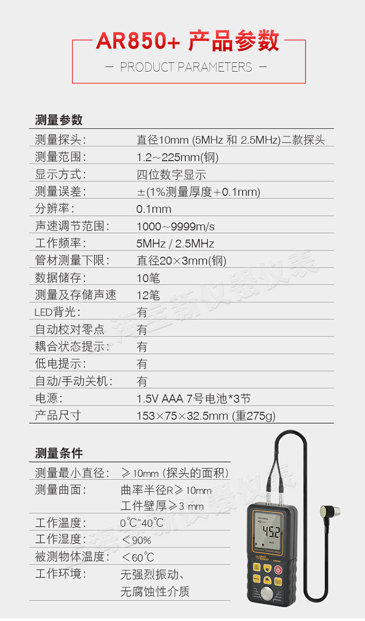 当前位置:首页 » 产品中心 » AR850+超声波测厚仪厚度测量仪高精度金属钢板测厚仪AR860