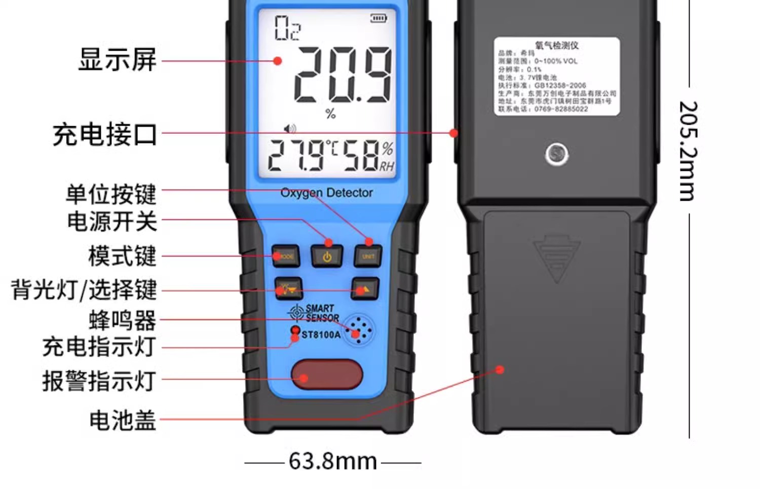 【新款ST8100A】100%高浓度测氧仪