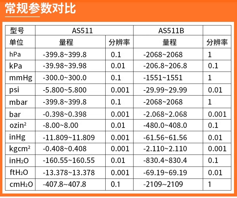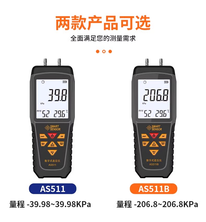 希玛AS511B手持式数显压差计灵敏风压燃气压力检测表负压表压差计