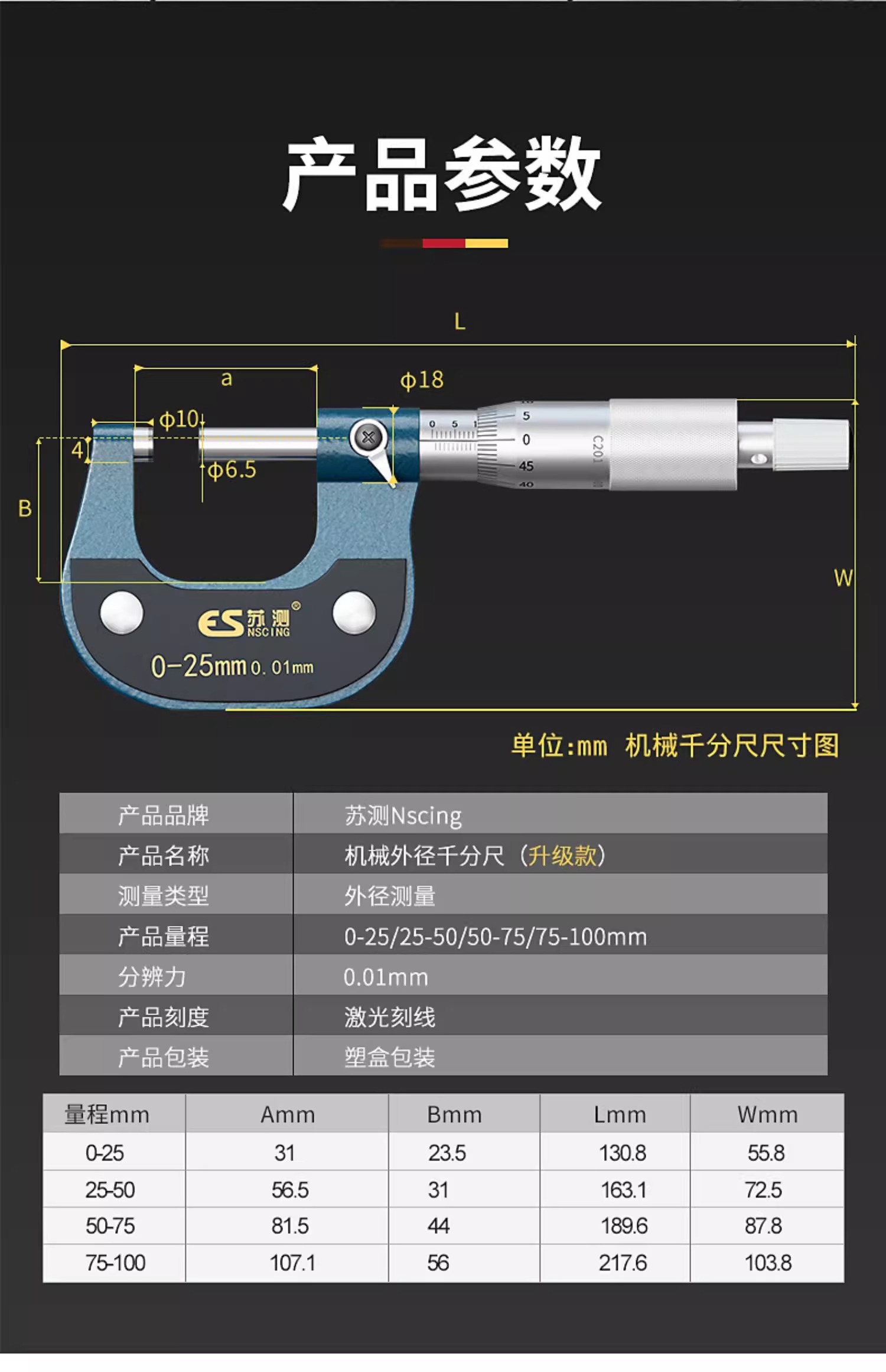 【新年感恩价】0-25mm升级款外径千分尺