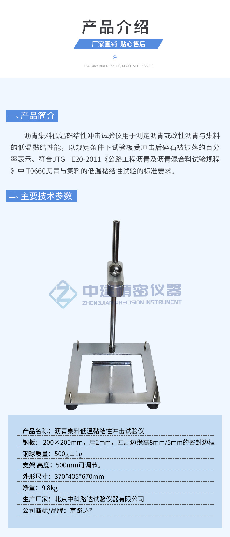 沥青集料低温黏结性冲击装置支架钢球钢板装置公路混合料试验仪