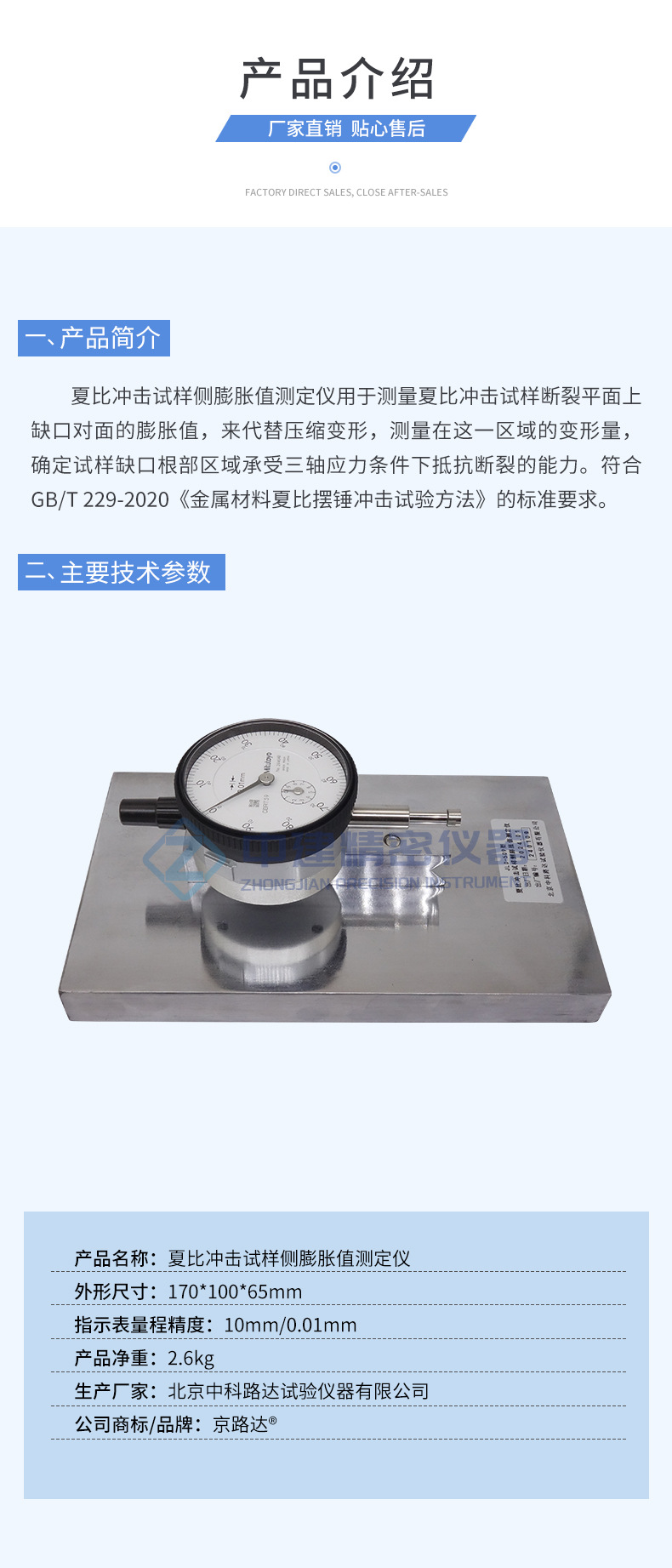 夏比冲击试样侧膨胀值测定仪测量金属材料摆锤试验装置GBT229