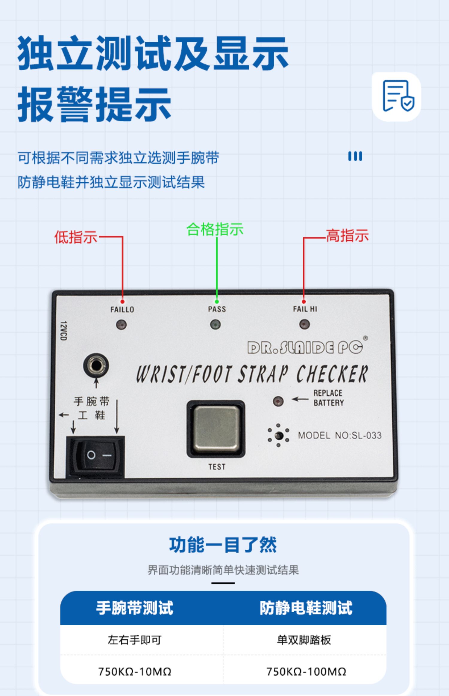 当前位置:首页 » 产品中心 » 人体综合测试仪防静电鞋车间检测仪手腕带单脚人体静电检测SL-033