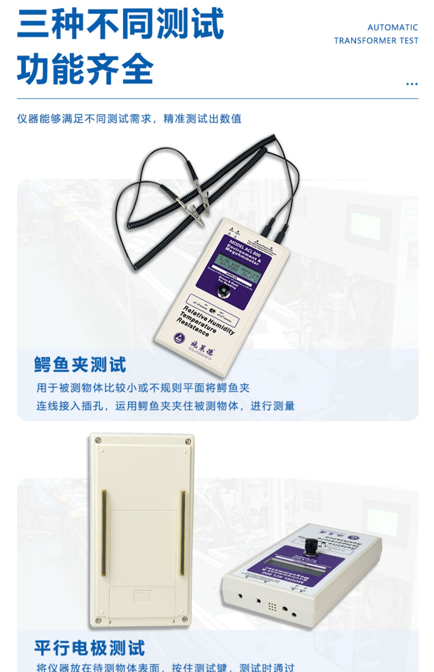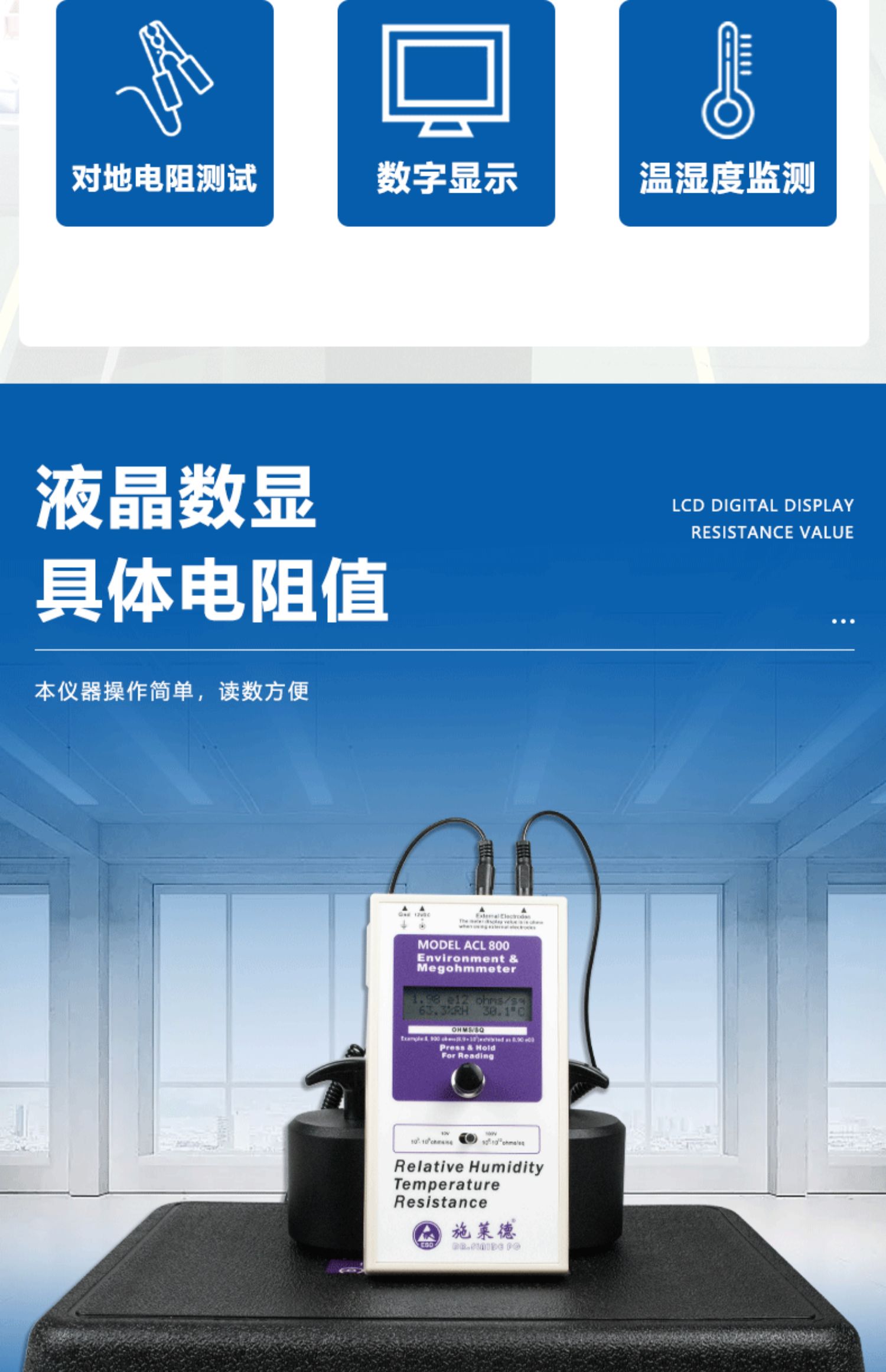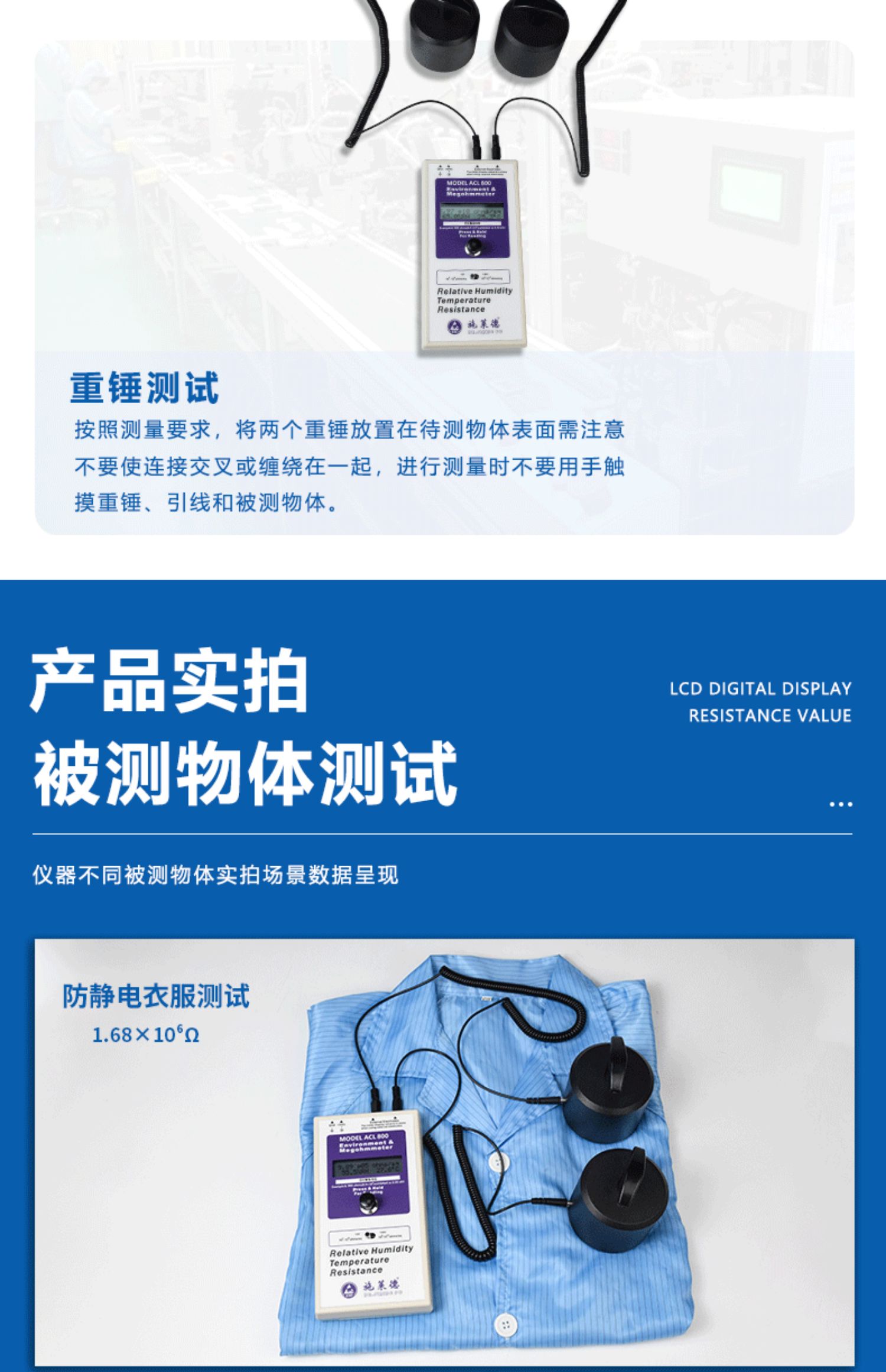 当前位置:首页 » 产品中心 » 重锤表面电阻测试仪防静电台垫地板地坪阻抗电阻测量欧姆表ACL800
