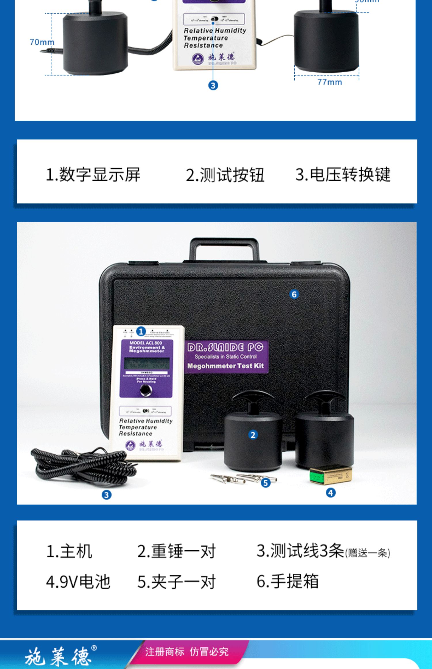 重锤表面电阻测试仪防静电台垫地板地坪阻抗电阻测量欧姆表ACL800