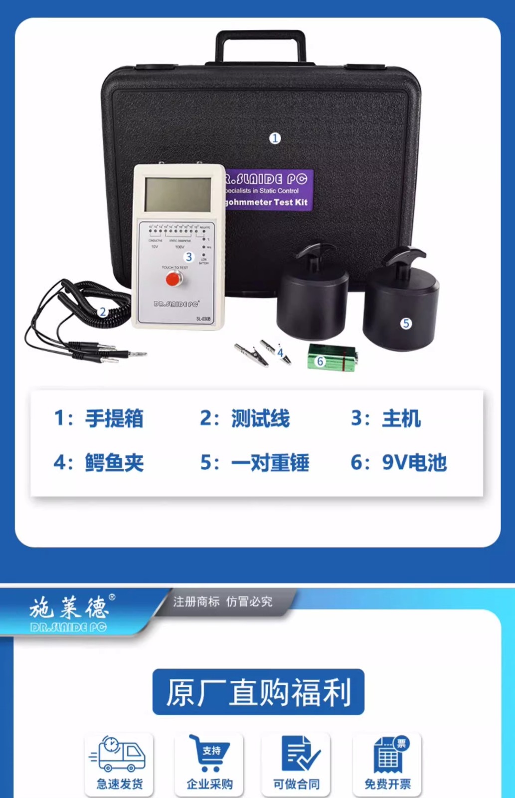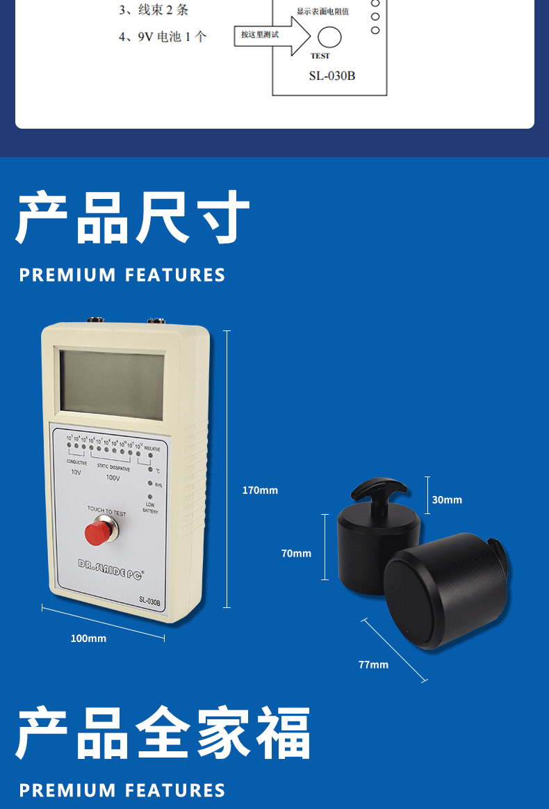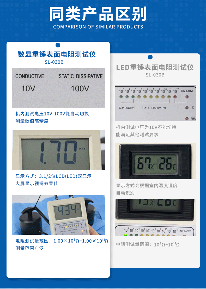 重锤表面电阻测试仪导电防静电绝缘阻值检测数显阻抗兆欧表SL030B