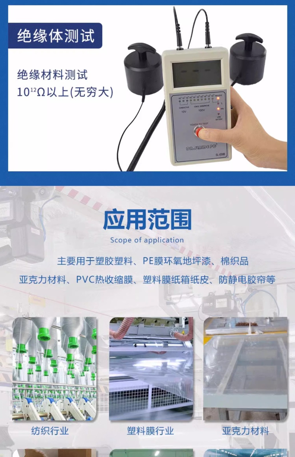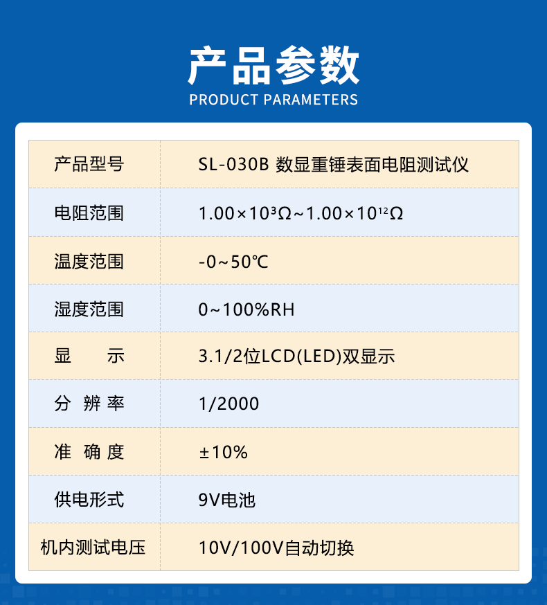 当前位置:首页 » 产品中心 » 重锤表面电阻测试仪导电防静电绝缘阻值检测数显阻抗兆欧表SL030B