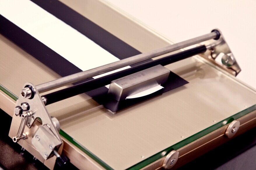 2、将待涂布底材(如:黑白纸)平铺在涂布底座上,用夹具夹紧。建议使用平整的涂布底材,并在底端用透明胶布固定,以免待涂布底材涂布过程中滑动,造成涂布失败。
