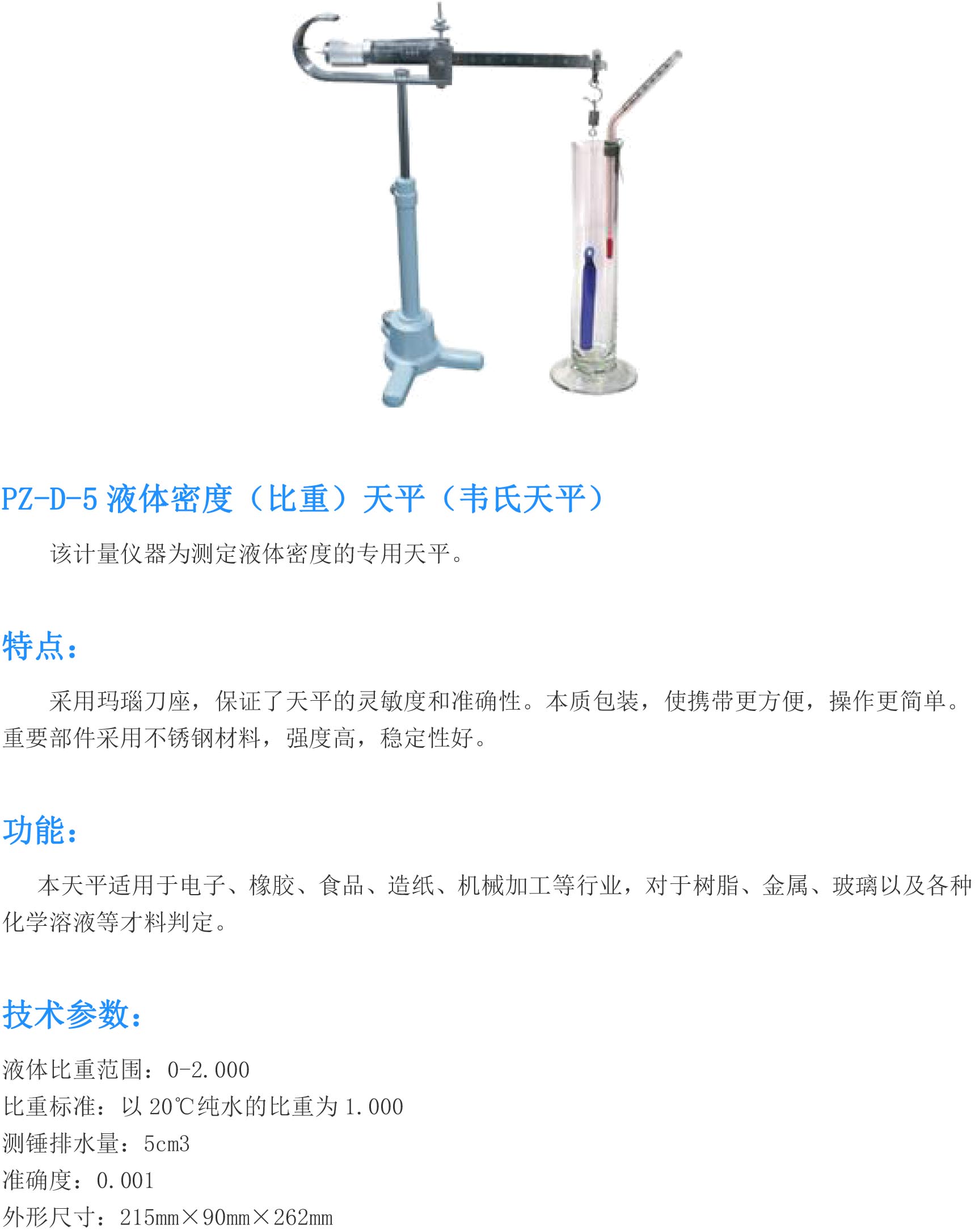 体密度比重天平韦氏天平比重实验室天平秤0-2.000PZ-D-5