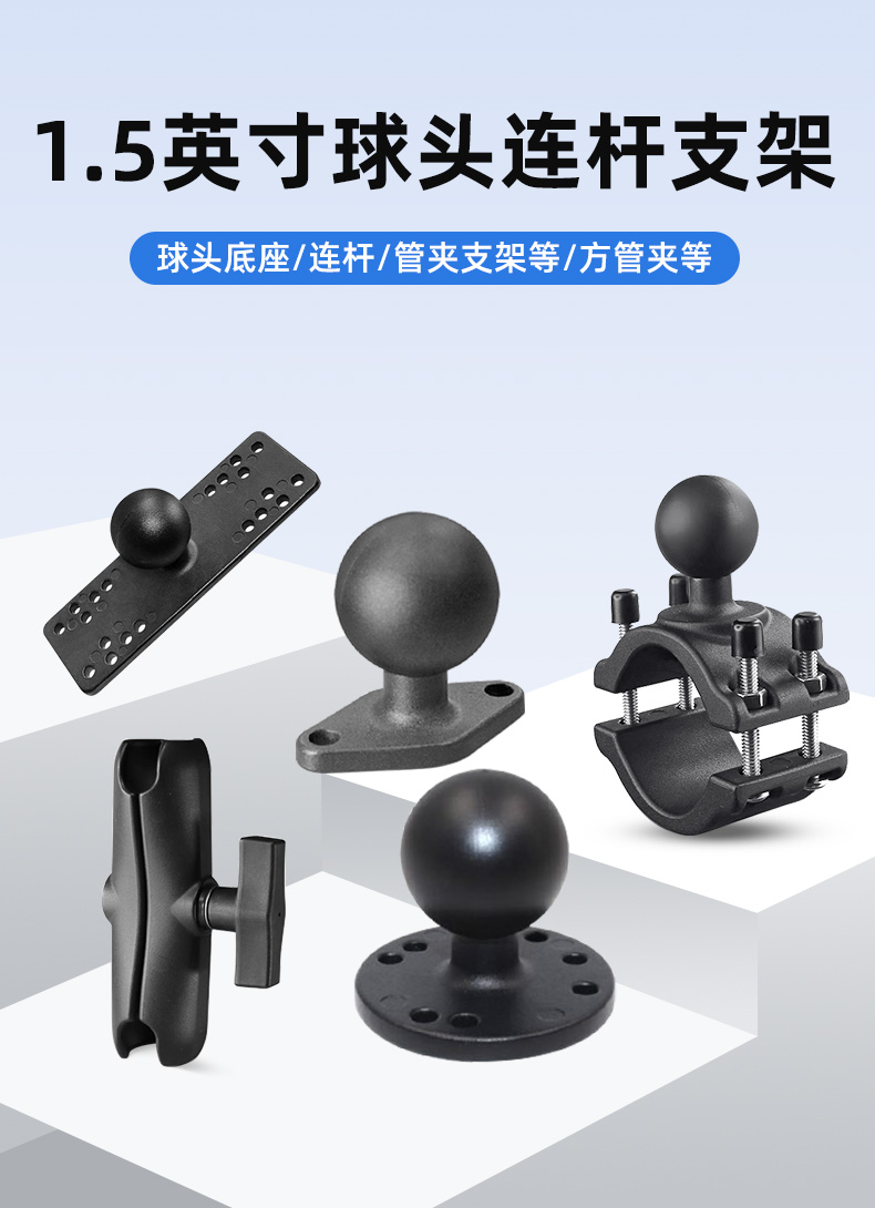 工业平板显示器1.5英寸球头支架底座配件连杆底座车载农机配件