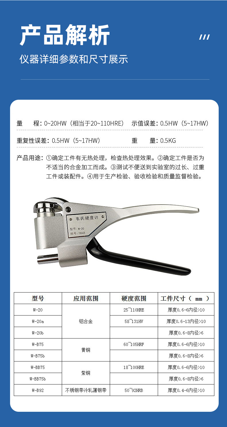 祈鑫韦氏硬度计W-20A/B/B75铝合金型材黄铜不锈钢金属硬度测试仪