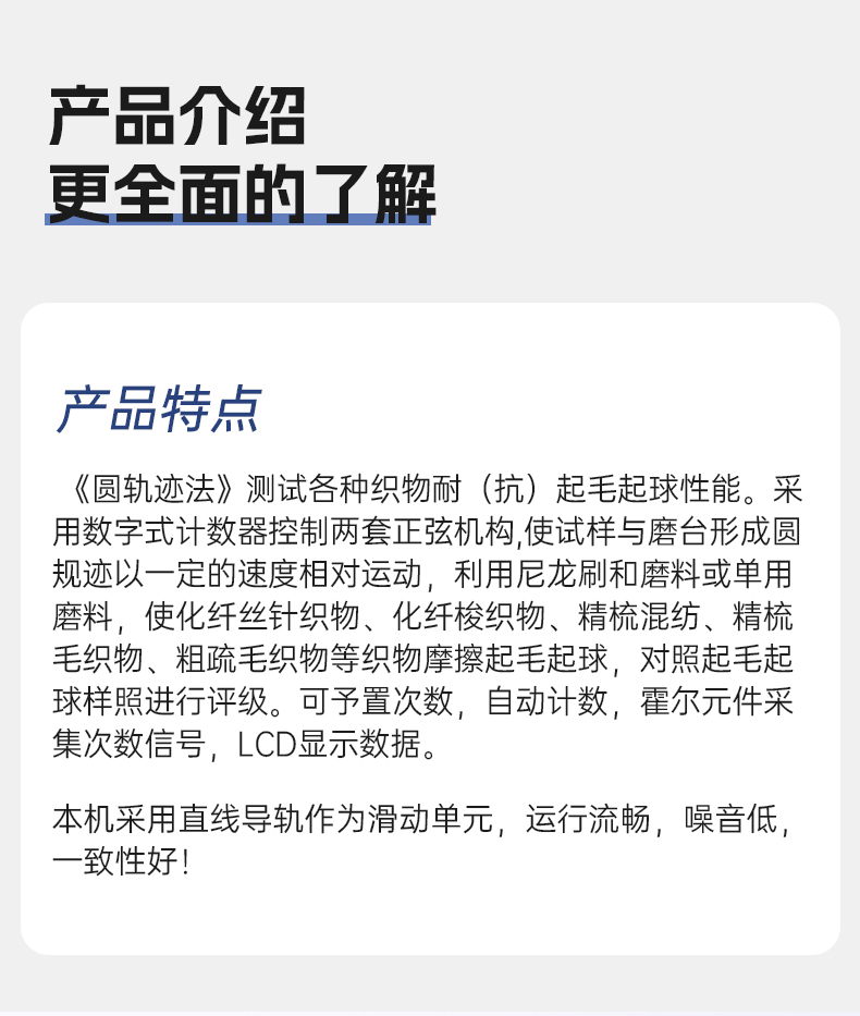 当前位置:首页 » 产品中心 » YG502织物起毛起球测试仪圆轨迹摩擦耐磨试验机纺织面料布料检测
