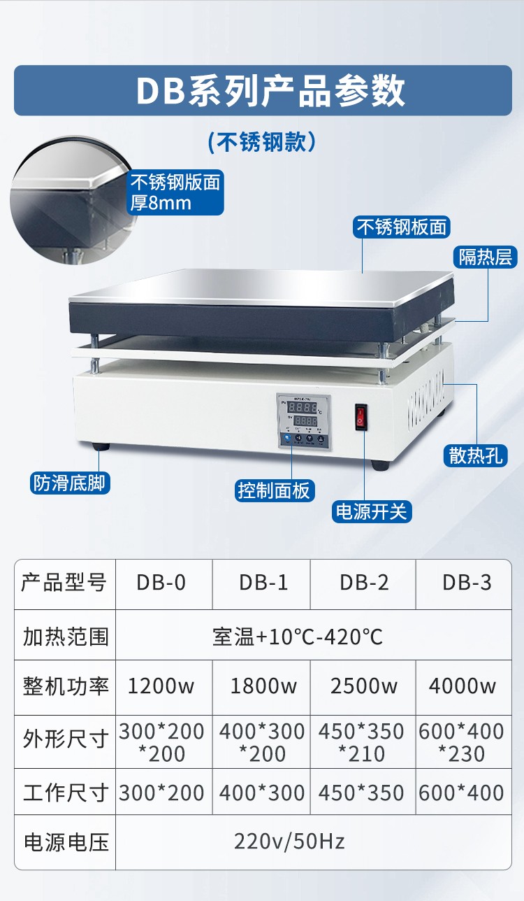 不锈钢电热恒温加热板DB-XAB/1AB/2AB/3AB石墨电热板实验室
