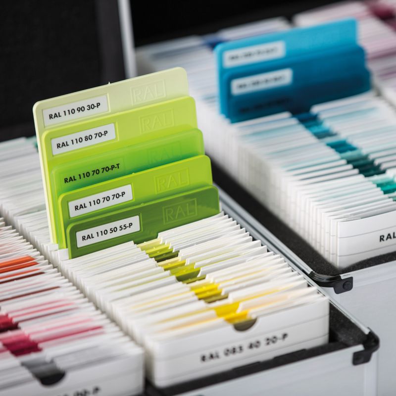P1套装包含一个保护壳,内含RAL CLASSIC系列中*的100种颜色。另外两个箱子包含RAL P2套装,包含160个不透明和40个透明塑料色样,来自RAL DESIGN SYSTEM PLUS调色板。这些均匀颜色的塑料样品让你体验光线与材料颜色的相互作用,以及这对整体颜色和材料感知的影响。