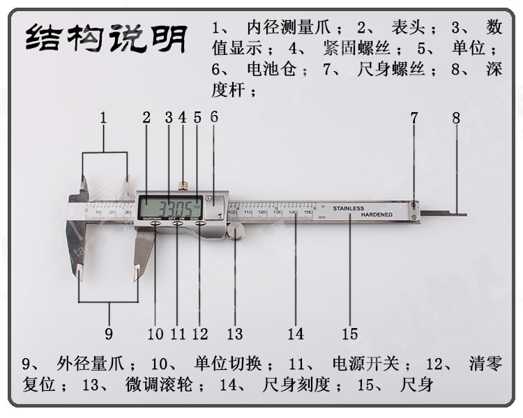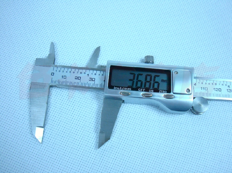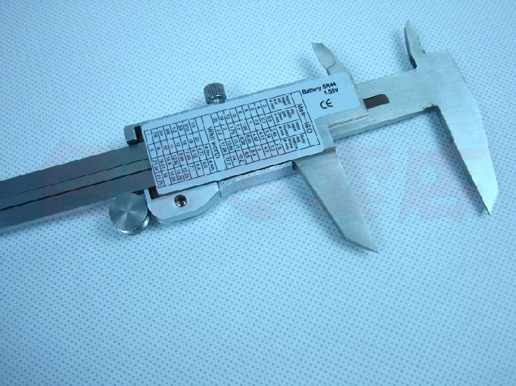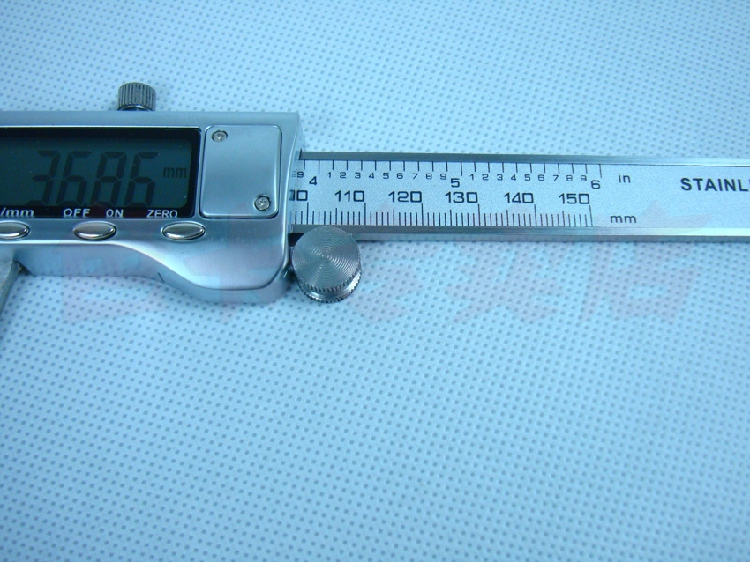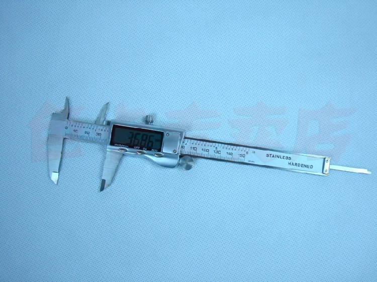 三按键电子数显游标卡尺 型号0-150 精度:0.01mm 测量范围:150/6“ 分辨率0.01/0.0005m 主要特点: 1.带电源开关(ON/OFF) 2.任意位置公英制互换(inch/mm) 3.任意位置清零(ZERO) 4.带数据输出 5.ABS环保塑料盒子包装
