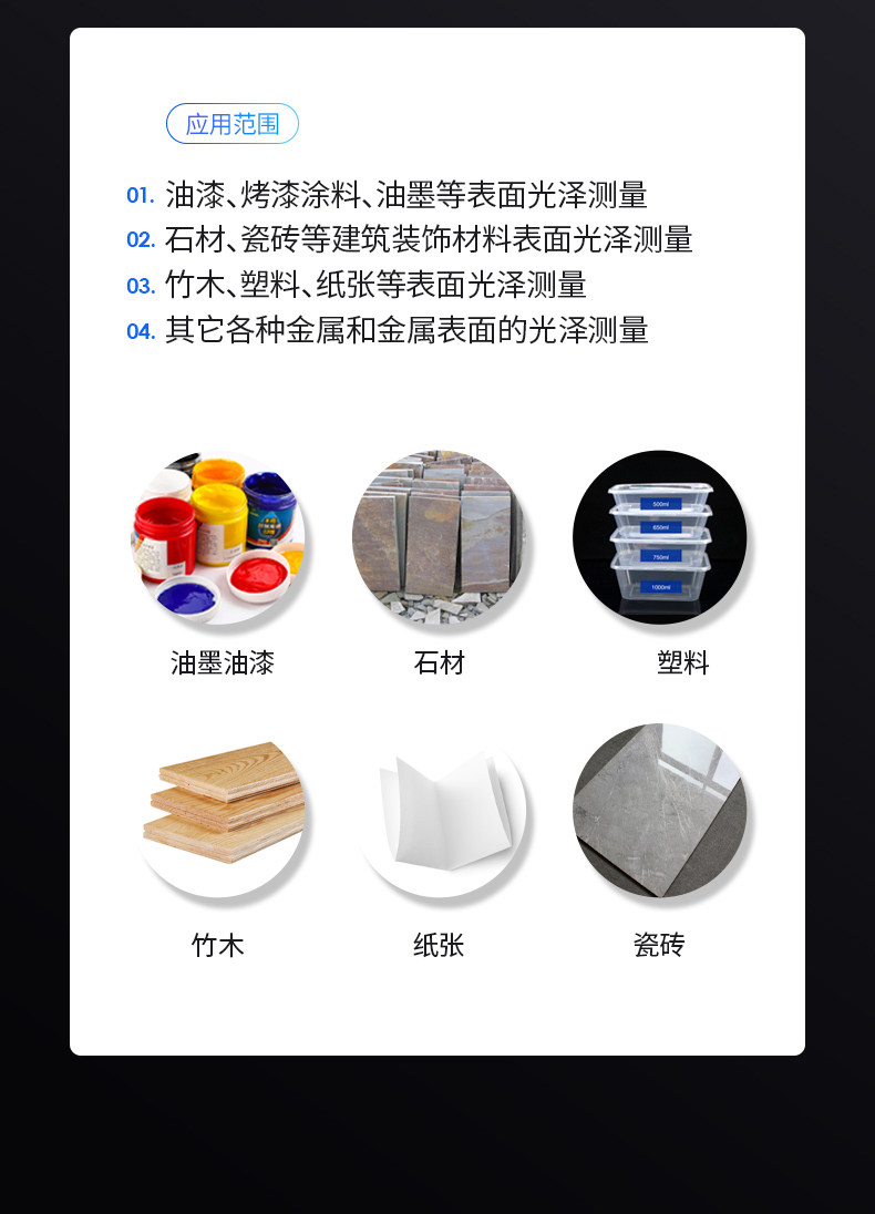 颜色分类: WGG60-E4(通用型可充电) WGG60-ES4(石材专用充电) WGG60-Y4(高精度通用型) WGG60-EJ(金属高光泽度) MG6-S1(通用性免充电) 黑白标准板一对 MG6-SS(石材专用免充电) MG6-F1(高精度免充电) MG6-SM(金属电镀高光) MG6-SA(金属高光曲面小孔) MG6-FS(小孔曲面高精度) MG268-F2(多角度光泽测量)