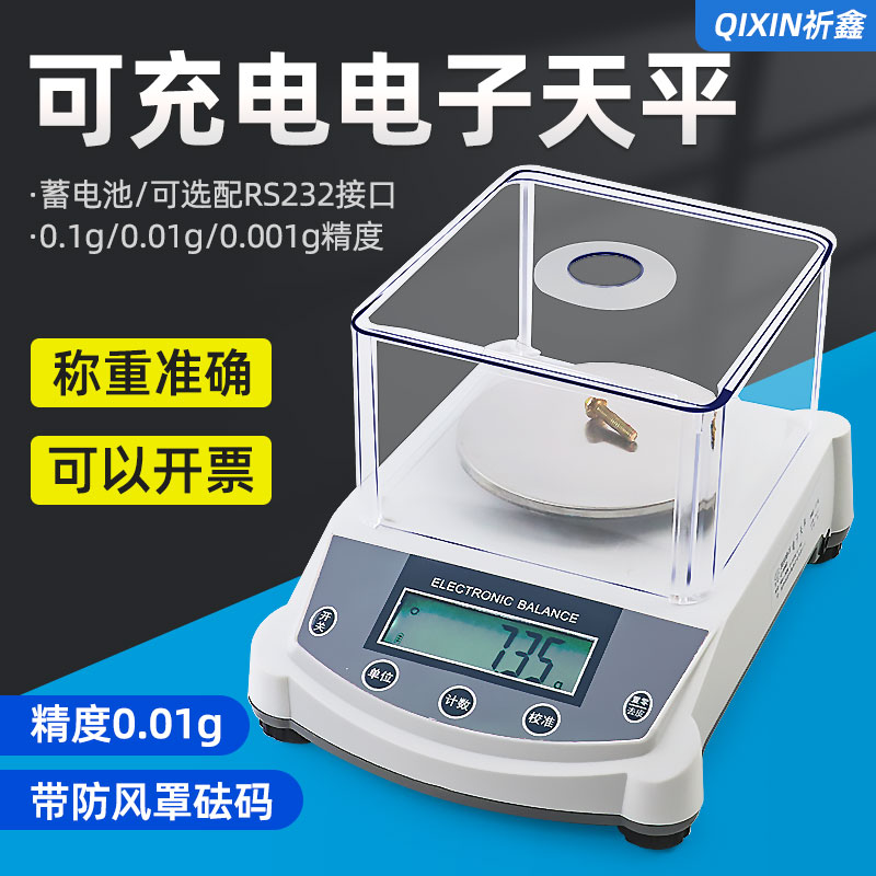 祈鑫QX102A可充电电子天平高精度电子秤精密*克重称0.1g/0.01g