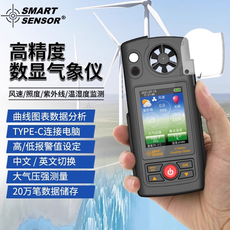 希玛ST9866A多功能气象仪便携式大气压风速紫外线照度气象检测仪