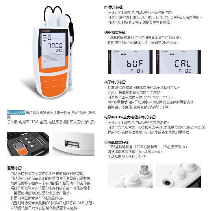 上海般特Bante900P-UK便携式多参数水质测量仪
