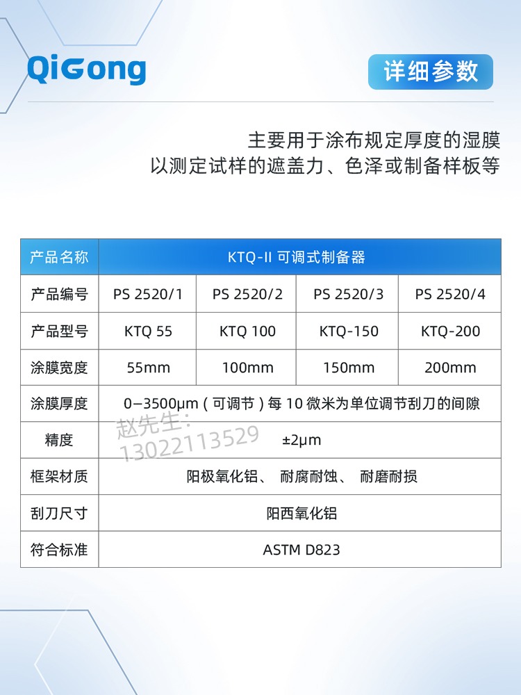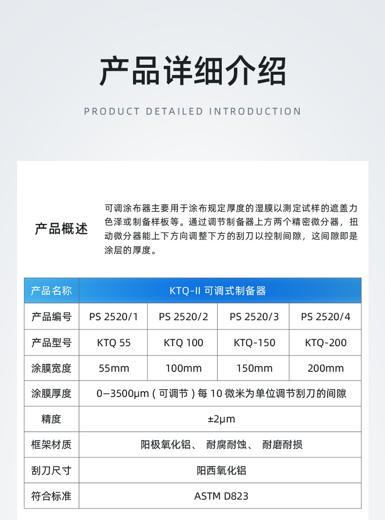制备器普申KTQ-II可调式涂膜器氧化铝材质可调节制备器涂料涂布器