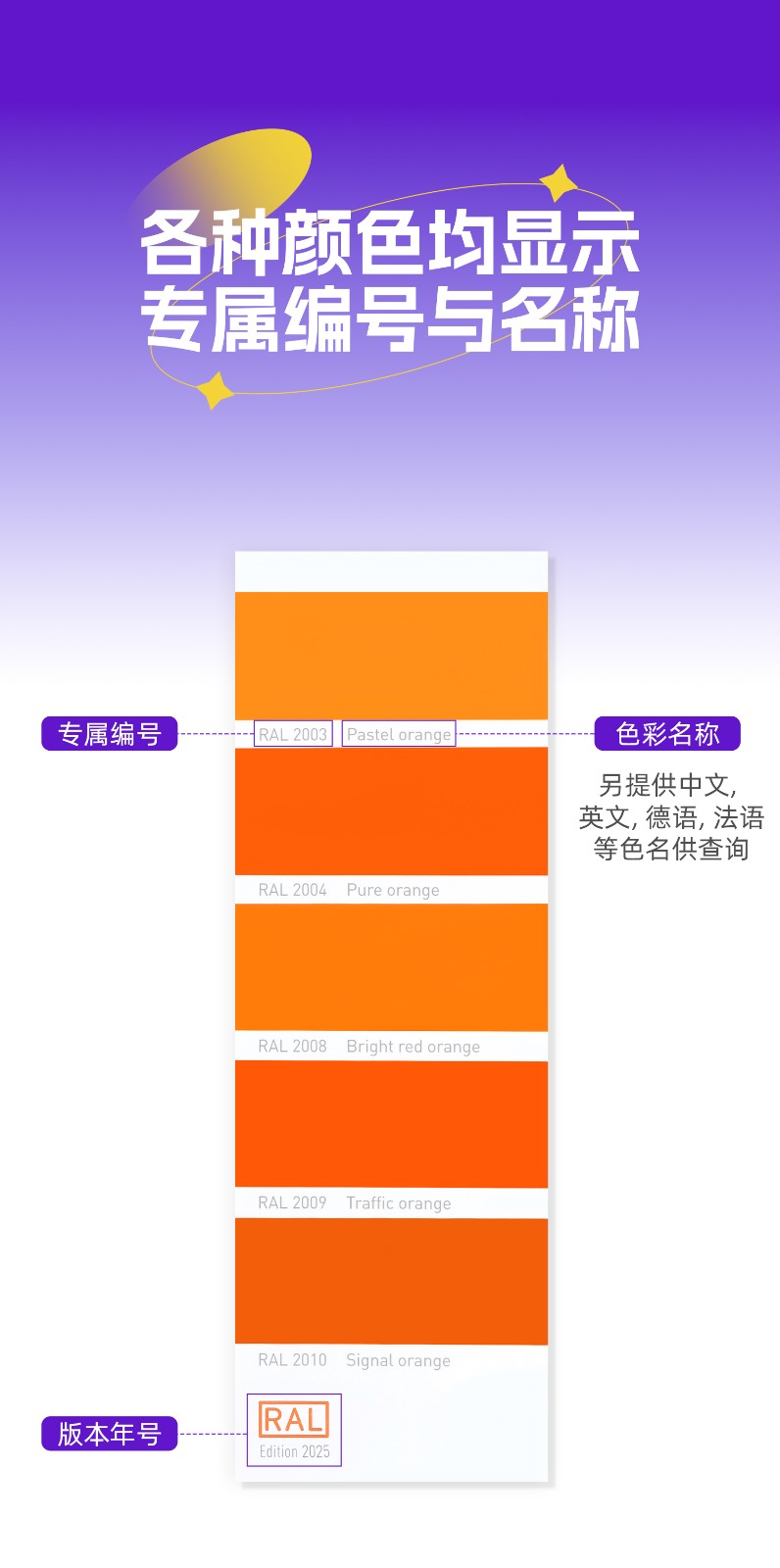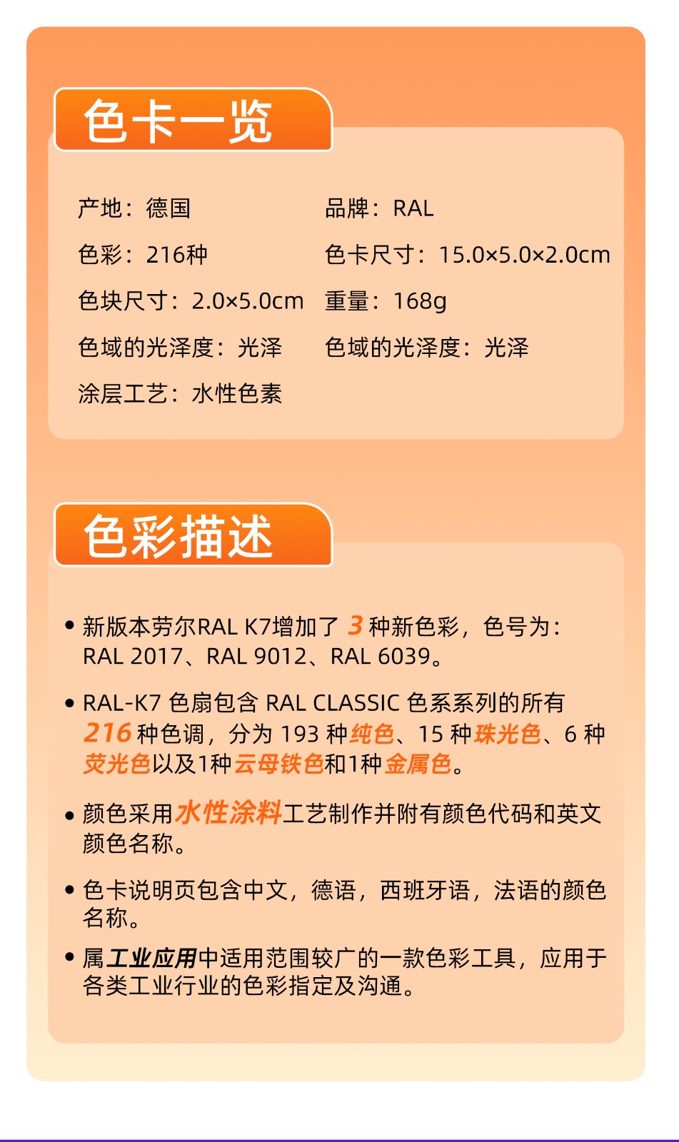 RAL K7 劳尔扇形色彩, 216种RAL Classic色彩,亮光, 5 种语言